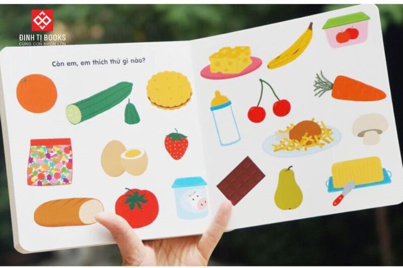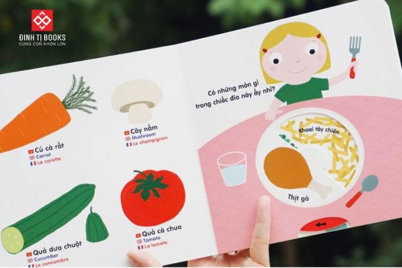 Với chất liệu bìa cứng trang trọng, độ bền cao, tranh minh họa đầy màu sắc, trình bày cô đọng, logic kèm theo miếng lật mở và pop up cuối trang, Đinh Tị Books đem đến bộ sách Sách tương tác - Sách chuyển động thông minh đa ngữ Việt - Anh - Pháp: Thức ăn – Foods – Les aliments hứa hẹn sẽ mang lại những bài học bổ ích, hứng thú cho bé. Bố mẹ cũng có thể cùng bé vừa học vừa chơi, tăng tính tương tác thông qua những trò đố vui, giúp bé có thêm nhiều hứng thú trong việc tiếp thu kiến thức một cách chủ động và đầy hào hứng.
